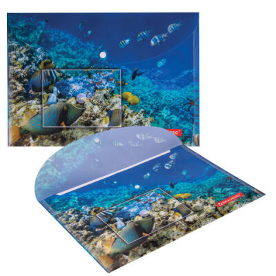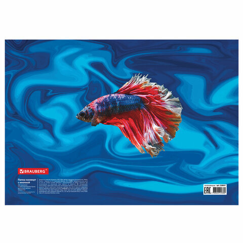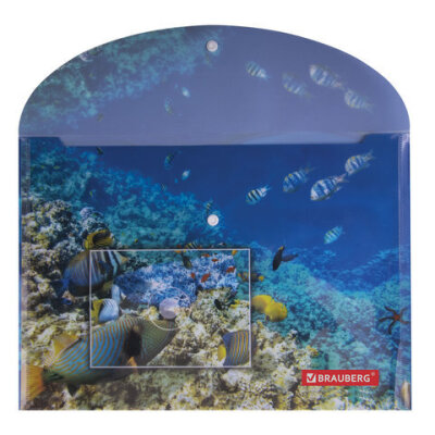 Папка-конверт с кнопкой BRAUBERG "SEA WORLD", А4, 160 мкм, до 100 листов, цветная печать, 228041