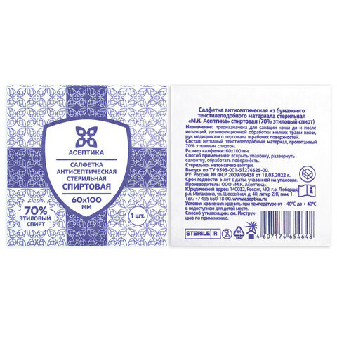 | Вид пропитки | 70% этиловый спирт |