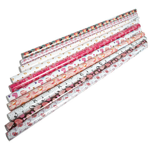 Бумага упаковочная подарочная мелованная "Love Story", 70x100 см, 10 дизайнов ассорти, ЗОЛОТАЯ СКАЗКА, 591916