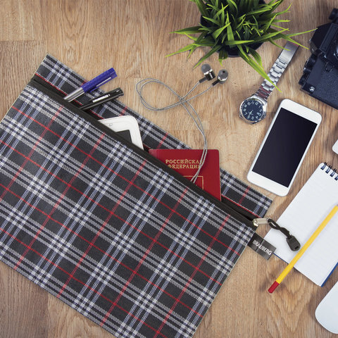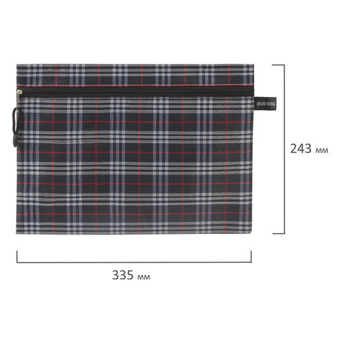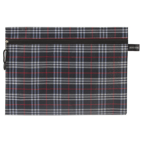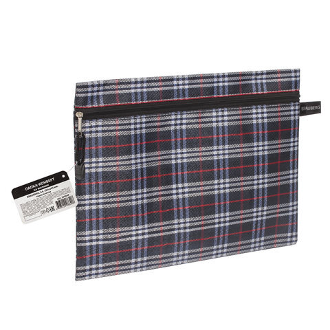 Папка-конверт на молнии А4 (335х243 мм), ткань в клетку, BRAUBERG "Elegant", 224049