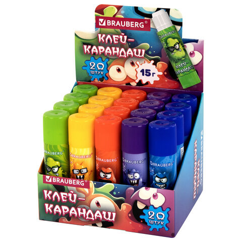 Клей-карандаш BRAUBERG "МОНСТРИКИ" – идеальный выбор для занятий творчеством в игровой форме в детском саду, школе и дома.