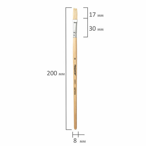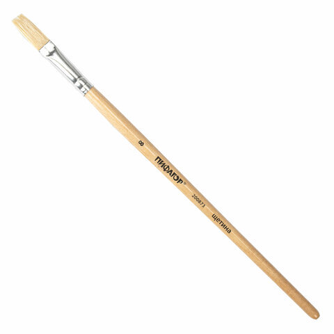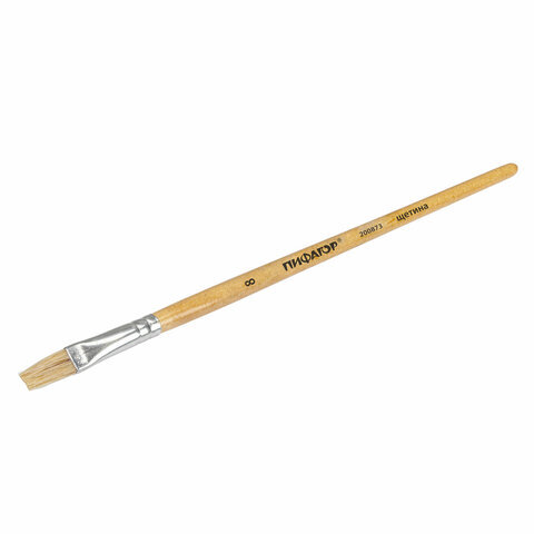 Кисть ПИФАГОР, ЩЕТИНА, плоская, № 8, деревянная лакированная ручка, пакет с подвесом, 200873