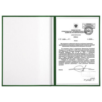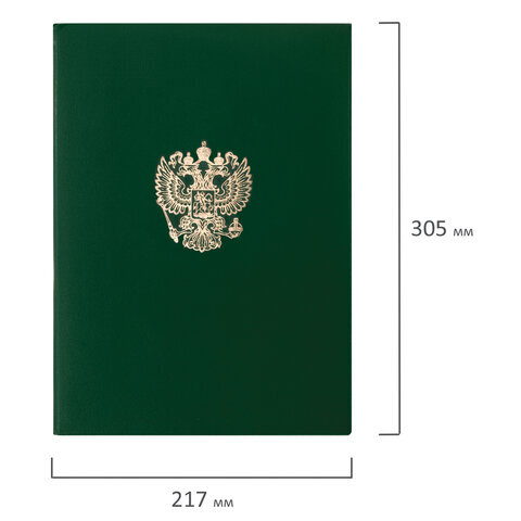 Папка адресная бумвинил с гербом России, формат А4, зеленая, индивидуальная упаковка, STAFF "Basic", 129581