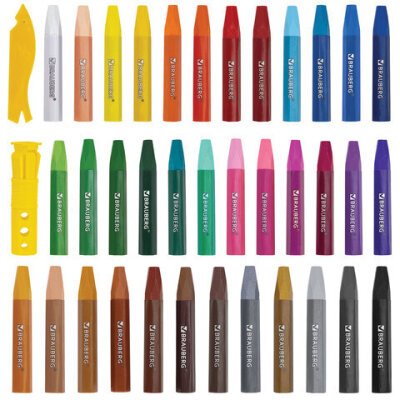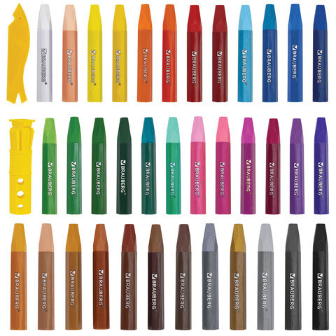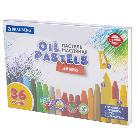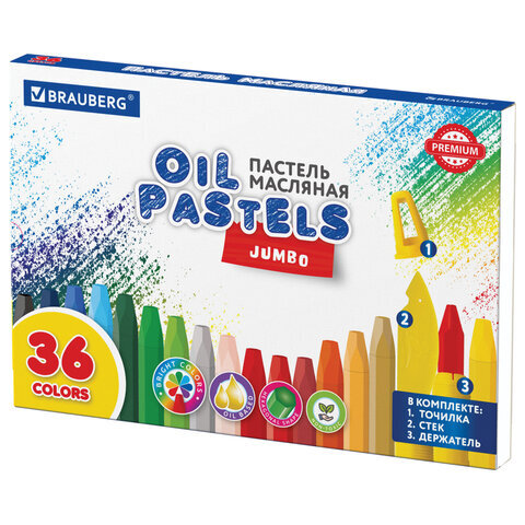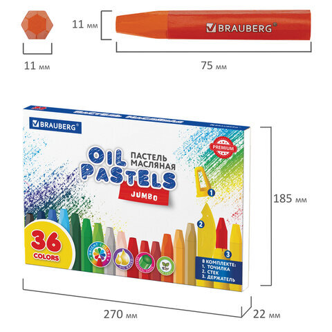 Пастель масляная восковые мелки утолщенные 36 цветов с точилкой, держателем и стеком, BRAUBERG PREMIUM, 272713
