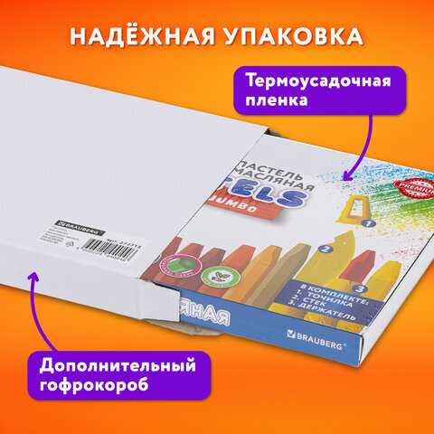 Масляная пастель BRAUBERG PREMIUM порадует как юных, так и опытных художников. Шестигранная форма удобно ложится в руку, а широкий выбор ярких цветов и мягкое письмо не оставят равнодушным ни одного опытного художника.