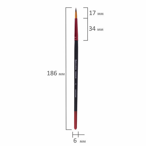 Кисть синтетика, круглая № 4, BRAUBERG PREMIUM, 201003