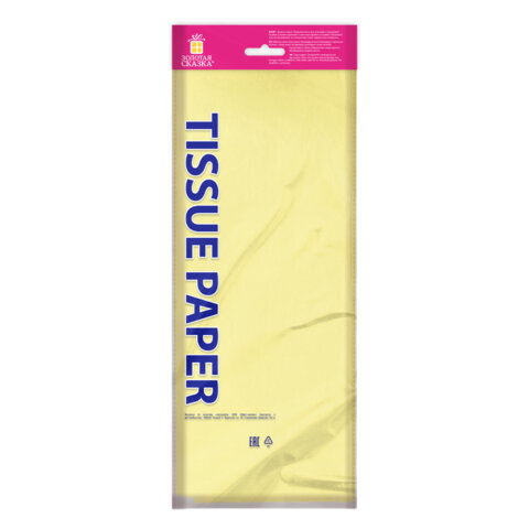 Цветная бумага ТИШЬЮ 17 г/м2, 50х66 см, 10 листов, лимонный цвет, ЗОЛОТАЯ СКАЗКА, 116479
