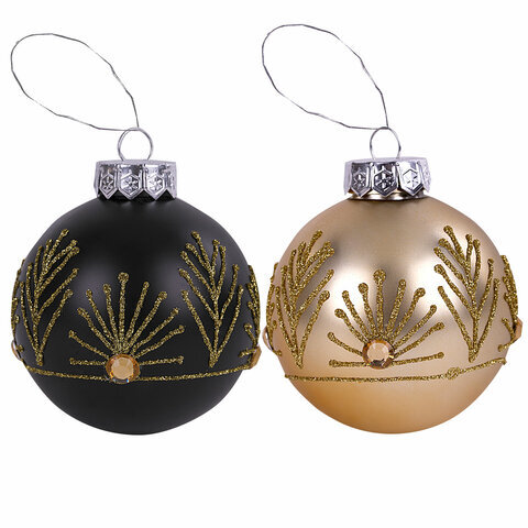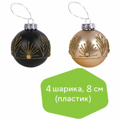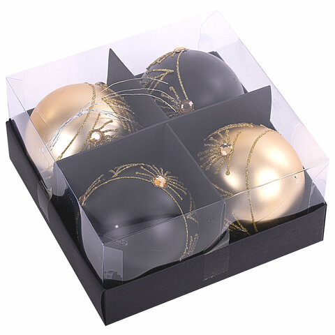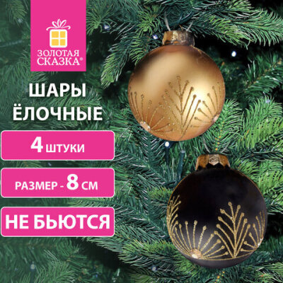 Шары ёлочные 4 шт., 8 см, "Yin-Yang", пластик, цвет: черный/золотистый, ЗОЛОТАЯ СКАЗКА, 591995