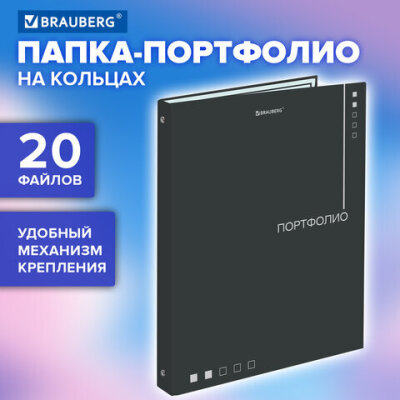 Папка-портфолио универсальная, 4 кольца, 20 файлов, 7БЦ матовая, BRAUBERG "Minimalism", 117553