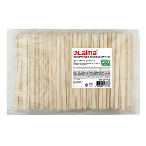 Размешиватель одноразовый деревянный 140 мм, КОМПЛЕКТ 450 шт., LAIMA, 604705