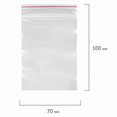 Пакеты с замком ZIP LOCK "зиплок", комплект 100 шт., 70х100 мм, ПВД, толщина 35 микрон, BRAUBERG, 606208