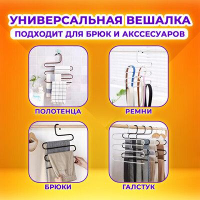 Вешалка для брюк и одежды "ЗМЕЙКА" позволяет повесить большее количество одежды на вешалку, что экономит время и облегчает поиск нужной вещи в шкафу.