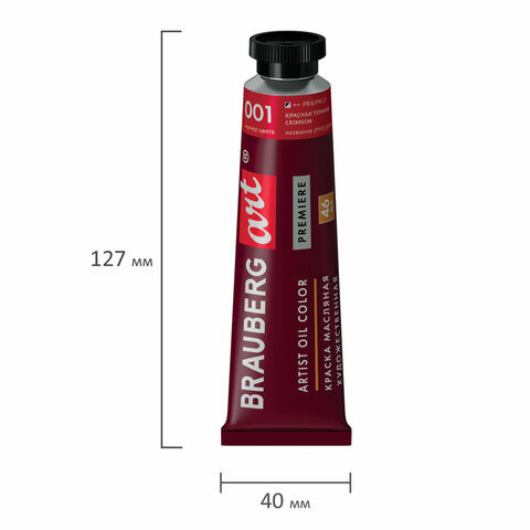 Краска масляная художественная BRAUBERG ART PREMIERE, 46 мл, проф. серия, КРАСНАЯ ТЕМНАЯ, 191410