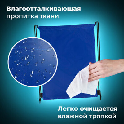 Мешок для обуви BRAUBERG ПРОЧНЫЙ, на шнурке, синий, 42x33 см, 227140