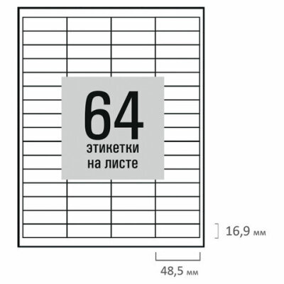 Количество этикеток на листе 64 шт.