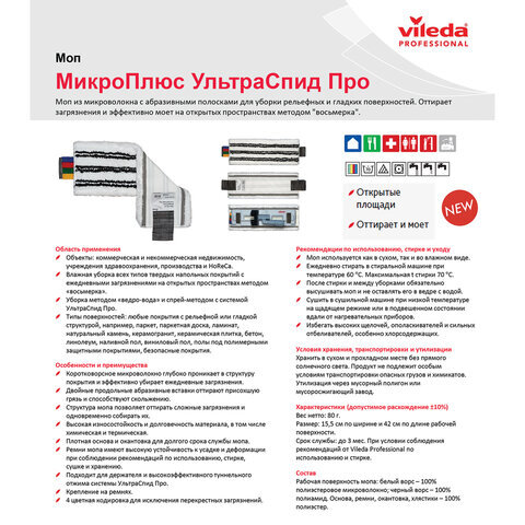 Унивесальный, экономичный, микроволоконный МОП для эффективной уборки любых видов полов, стен и потолков. Продольные нейлоновые полоски отлично удаляют въевшиеся загрязнения.