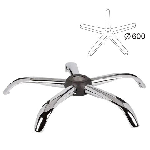 Пятилучие для кресла, нагрузка до 120 кг, диаметр 600 мм, металлическое, хром, 533051