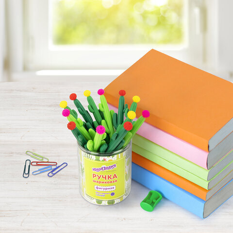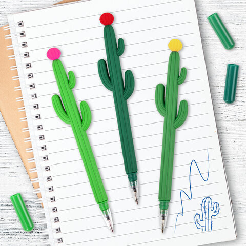 Ручка фигурная шариковая ЮНЛАНДИЯ "Кактус", мягкий силиконовый корпус, ассорти, СИНЯЯ, пишущий узел 0,7 мм, 143774