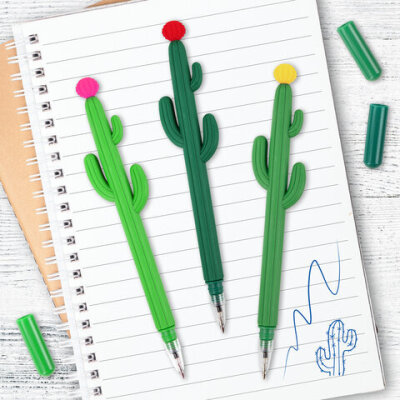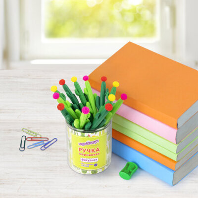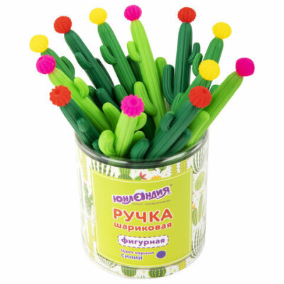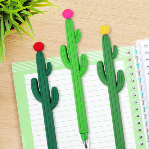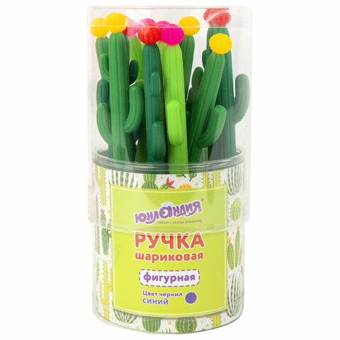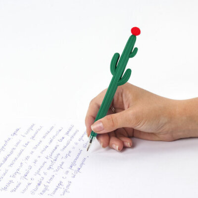 Шариковая ручка ЮНЛАНДИЯ "Кактус" с мягким силиконовым корпусом.