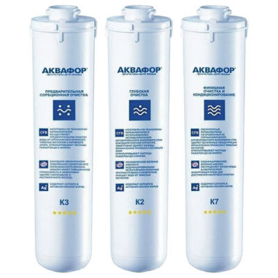 Картриджи сменные АКВАФОР "Кристалл К3-К2-К7" для холодной воды, 3 ступени, ресурс 8000 л, КОМПЛЕКТ 3 шт., 518543