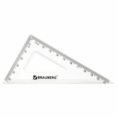Набор чертежный BRAUBERG (линейка 20 см, 2 треугольника, транспортир), прозрачный, 210853
