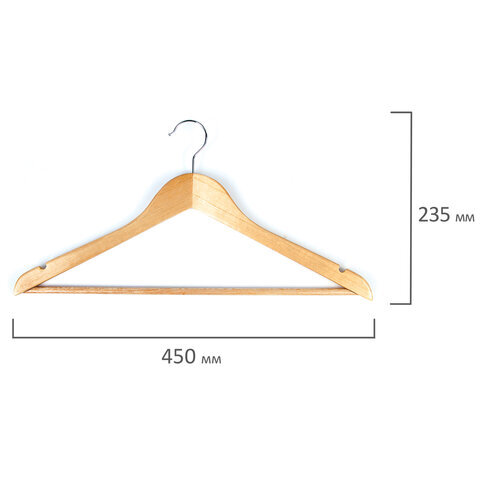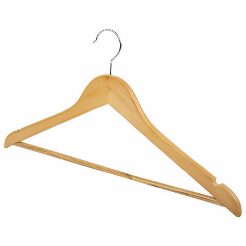 Вешалки-плечики, размер 48-50, КОМПЛЕКТ 5 шт., деревянная, перекладина, цвет сосна, ЛЮБАША Эконом, 604895