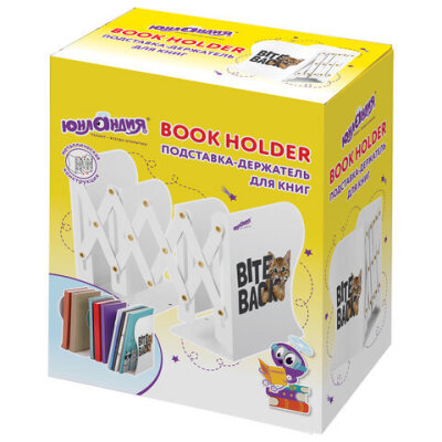 Подставка-держатель для книг и учебников ЮНЛАНДИЯ "Bite Back", раздвижная, металлическая, 237900