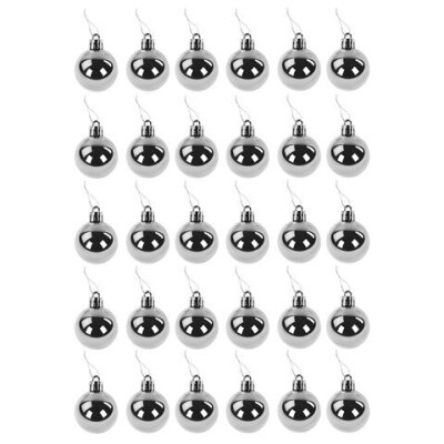 Шары ёлочные 30 шт., 4 см, "Solid Color", пластик, СЕРЕБРО, глянец, ЗОЛОТАЯ СКАЗКА, 592498