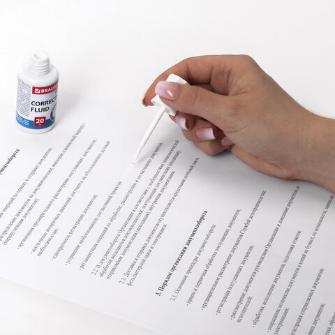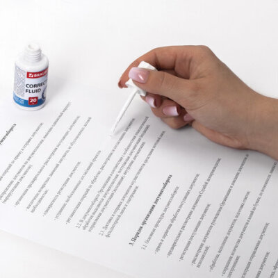 Корректирующая жидкость BRAUBERG обеспечивает аккуратное исправление печатного или рукописного текста.