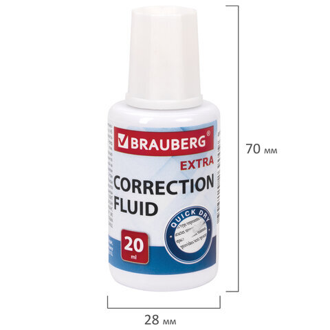 Корректирующая жидкость BRAUBERG EXTRA быстросохнущая, 20 мл, с кисточкой, 229397