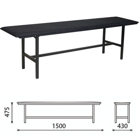 Банкетка без спинки "Берта", 1500х430х475 мм, усиленная, черный каркас, кожзам черный, разборная