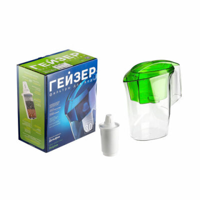 Кувшин-фильтр для очистки воды ГЕЙЗЕР "Дельфин", 3 л, 2 сменных картриджа, зеленый, 62035