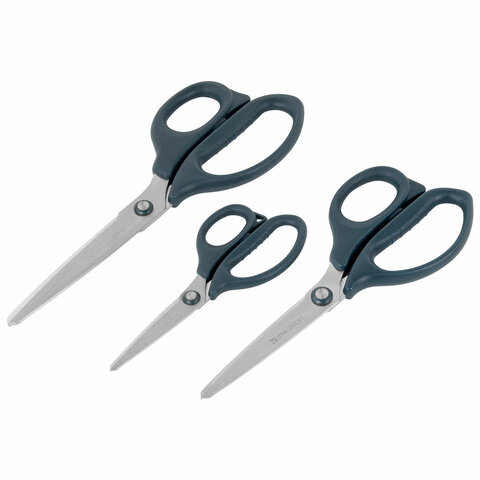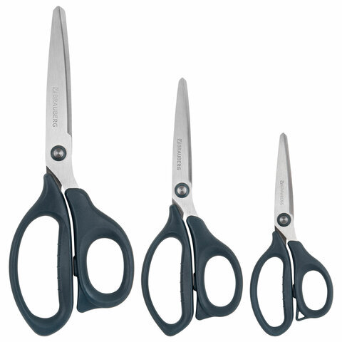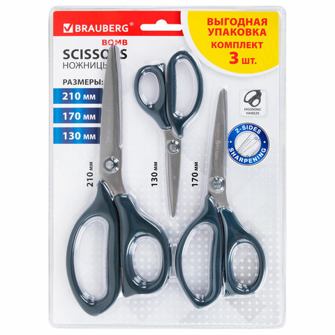 Ножницы BRAUBERG "BOMB" 3 шт. (130, 170, 210 мм), темно-серые ручки, ВЫГОДНАЯ УПАКОВКА, 272980