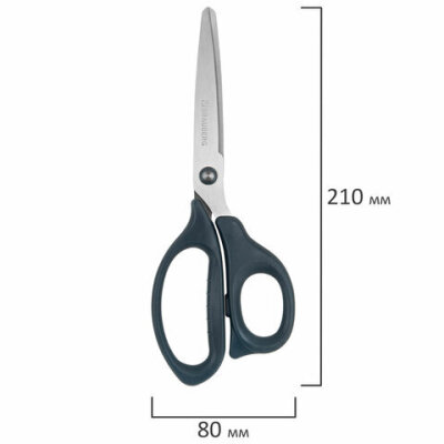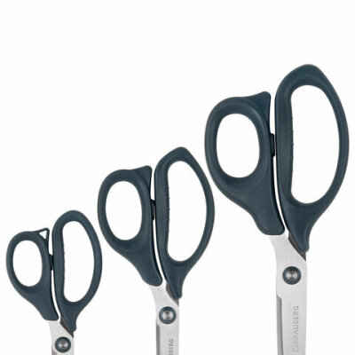 Набор универсальных ножниц BRAUBERG. Эти ножницы идеально подходят для резки бумаги, картона и других материалов, что делает их незаменимыми как в офисе, так и дома.