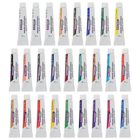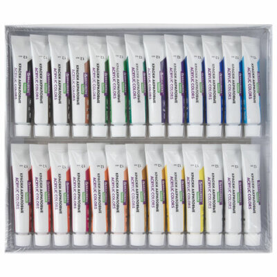| Цвет | белила титановые (044), виридоновый зеленый (067), голубой ФЦ (039), желтая средняя (023), киноварь (006), кобальт синий (038), коричневый, красная светлая (003), красная темная (001), лимонная желтая (021), оранжево-желтый (026), охра желтая (029), розовый (310), светло-зеленый, сиена жженая (082), сиена натуральная, телесный (046), травяной зеленый (066), ультрамарин (033), умбра жженая (084), фиолетовый средний (095), фиолетовый темный (091), церулеум (036), черный (051) |