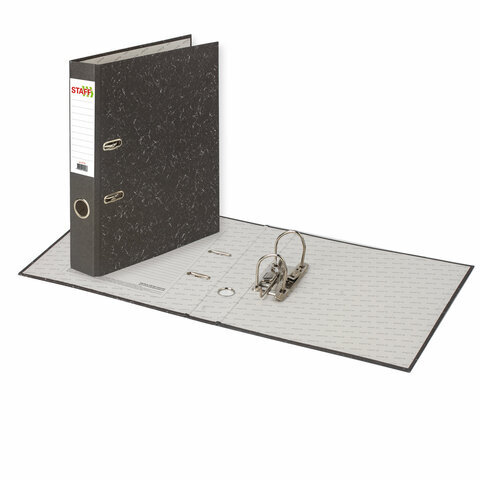 Папка-регистратор STAFF "Basic" БЮДЖЕТ с мраморным покрытием, 50 мм, без уголка, черный корешок, 227184