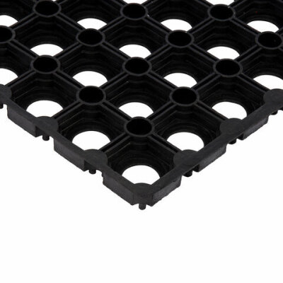 Крупноячеистое резиновое покрытие защищает помещение от уличной грязи.