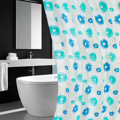 Шторка для ванной ПОЛИЭСТЕР, 180х200 см, кольца в комплекте, ЦВЕТЫ, PRIMILA (ПРИМИЛА), 700082