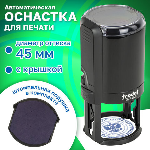 Оснастка для печатей, оттиск D=45 мм, синий, TRODAT 4645, корпус черный, крышка, подушка