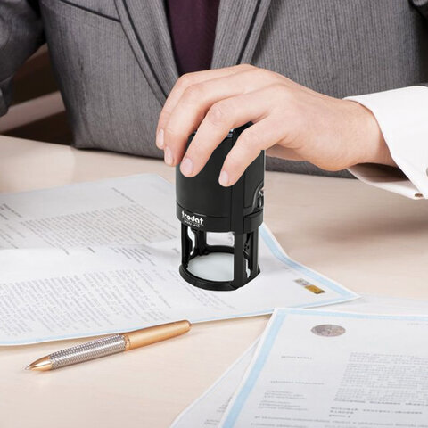 Оснастка предназначена для простановки на бумаге круглой печати. Часто используется для гербовых печатей и печатей с большим количеством информации. Сменная подушка в комплекте.
