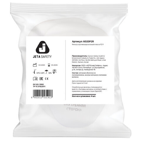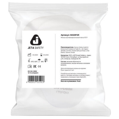 Фильтр противоаэрозольный (предфильтр) Jeta Safety 6020P2R (6022), комплект 4 шт., класс P2 R