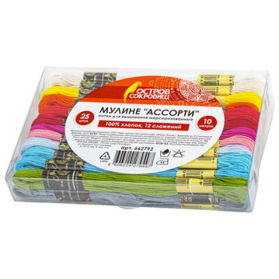 Набор ниток для вышивания (мулине) "АССОРТИ", 25 цветов по 10 м, х/б, ОСТРОВ СОКРОВИЩ, 662792