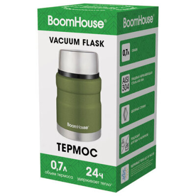 Термос BOOMHOUSE – практичное решение для сохранения температуры еды и напитков до 24 часов! Двойные стенки из нержавеющей стали SUS304 надёжно удерживают тепло, а широкое горло удобно для первых и вторых блюд. Незаменим в поездках, на работе и отдыхе.