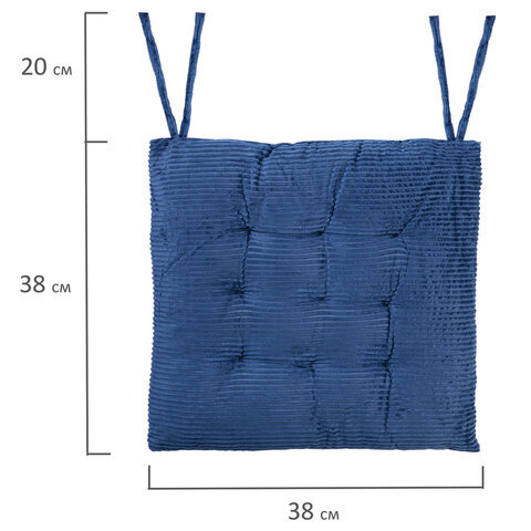 Подушка на стул "ВЕЛЬВЕТ" 38х38 см, полиэстер, синяя, PRIMILA (ПРИМИЛА) CLASSIC, 700505