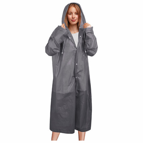 Дождевик плащ на кнопках, EVA, многоразовый прочный, чехол в комплекте, универсальный размер, серый, SHAMAANI (ШАМААНИ), 610936