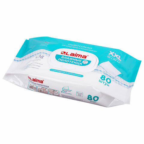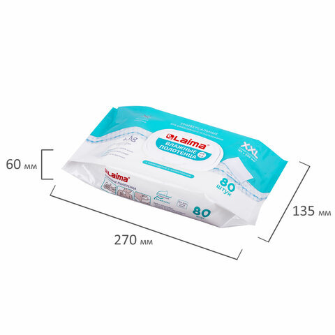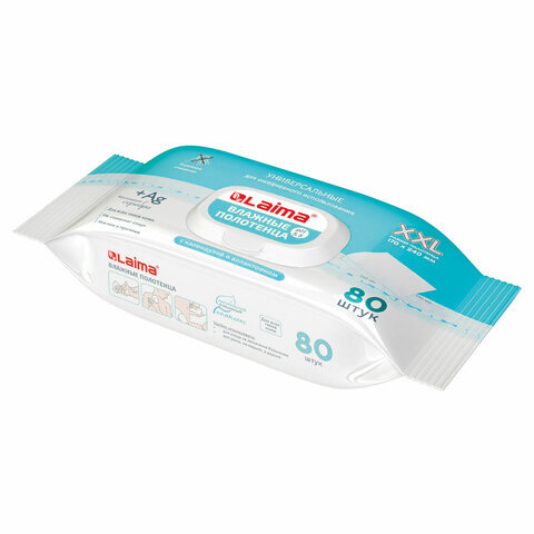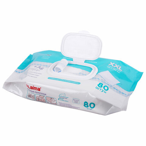 Полотенца влажные 80 шт., БОЛЬШИЕ XXL 16,5х25 см, с аллантоином и коллоидным серебром, LAIMA, 115222