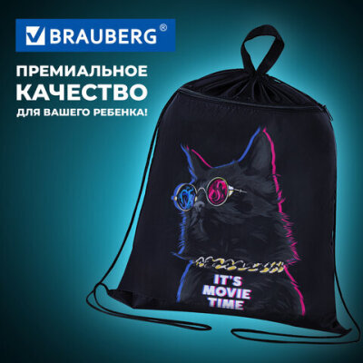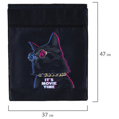 Мешок для обуви BRAUBERG, с петлёй, карман на молнии, 47х37 см, "Movie time", 270910