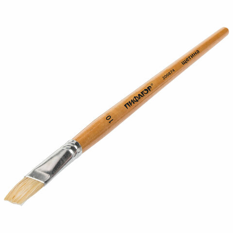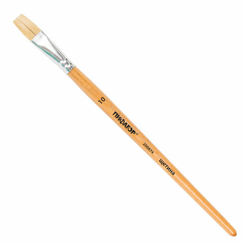 Кисть ПИФАГОР, ЩЕТИНА, плоская, № 10, деревянная лакированная ручка, пакет с подвесом, 200874