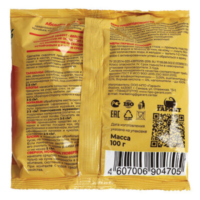 Средство от насекомых 100 г, АБСОЛЮТ ДУСТ СУПЕР, пакет, АДС100