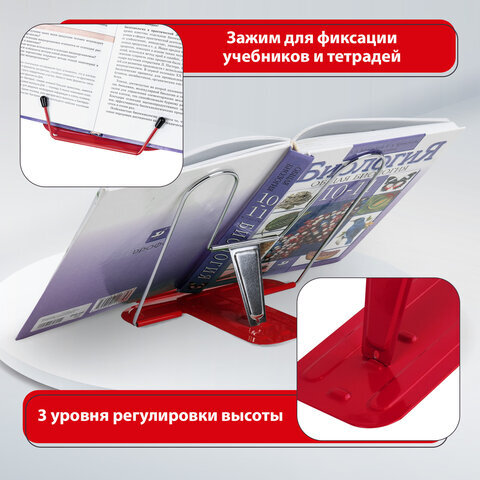 Подставка для книг и учебников BRAUBERG LINE+, металлическая, красная, европодвес, 238070